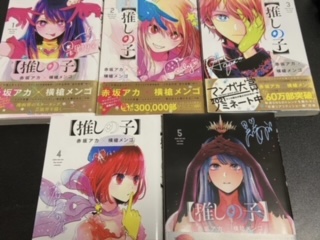 漫画本は懐かしいものから最近のものまで。推しの子はTVのエンタメニュースで取り上げられるくらいだし。たけにゃん、さすがっす!(笑)
