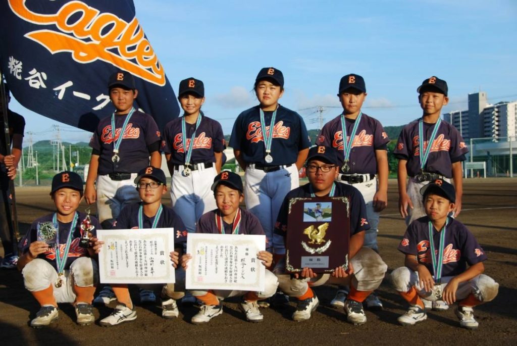 ※最初のオレンジユニフォームの写真は、「大人イーグルス」といって、少年野球のスタッフで構成したチームに卒団生なども参加して、他の少年野球チームと試合などをしています。