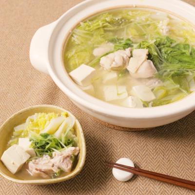 どのクックパッドのレシピかは聞いてないけど、シンプルなもので、そのスープに鶏肉と白菜があれば十分なものです。我が家の定番です。