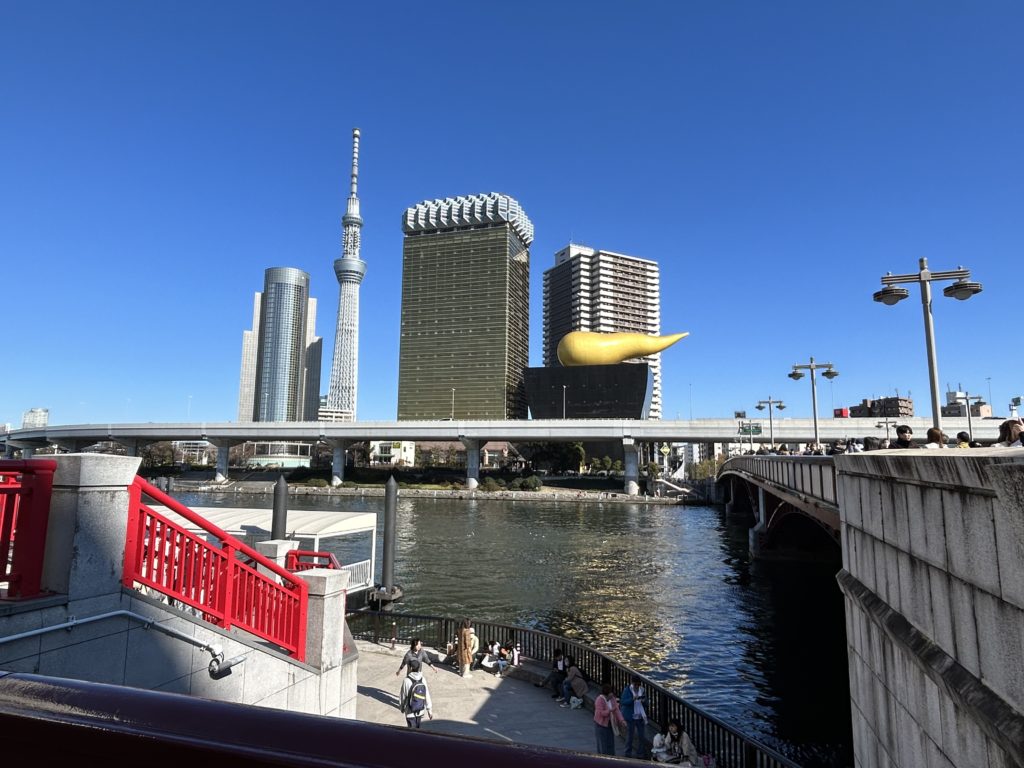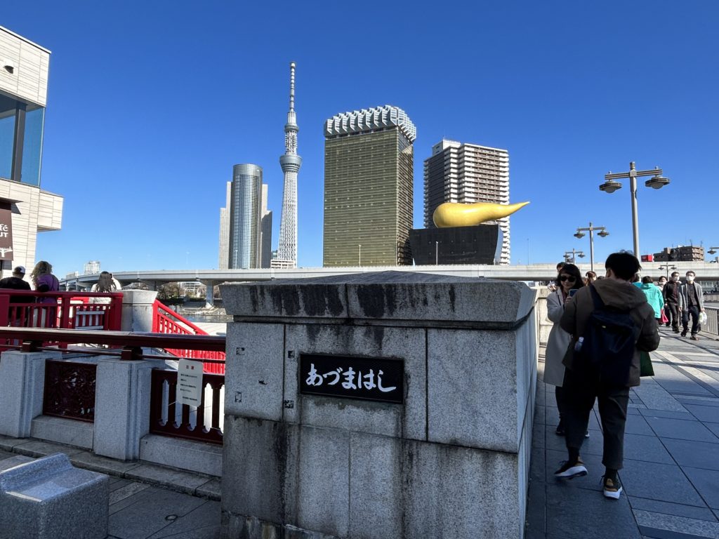 最後はあづま橋でアサヒビールとスカイツリーのコラボを娘に見せました。俺が昔、一人暮らししていた賃貸マンションからあづま橋までは5分程度。昔はよく浅草観光してたなと、20年前を懐かしみながら景色を見て回ることができました。さすがに20年も経つと色々店も変わってて楽しかったです。ちなみに、隅田川沿いの桜は蕾で来週辺りが見頃かなと思います。