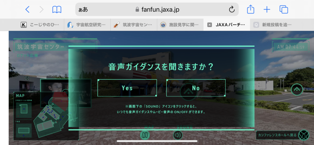 クリックするとバーチャルツアーが開始されます。近未来的で素敵な感じのバーチャルツアーです。ちなみに、解説は進撃の巨人のリヴァイ兵長でお馴染みの神谷浩史です。ワクワクしますよ。是非、音声ガイダンスはYESを選択してください❗️