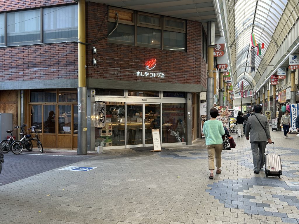 アーケードの中腹にある。