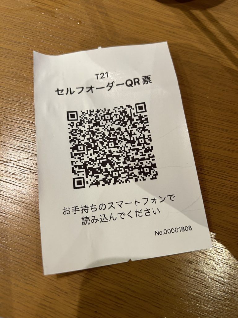 さて、店内に入るとQRコード読み取って自分の携帯で注文します。