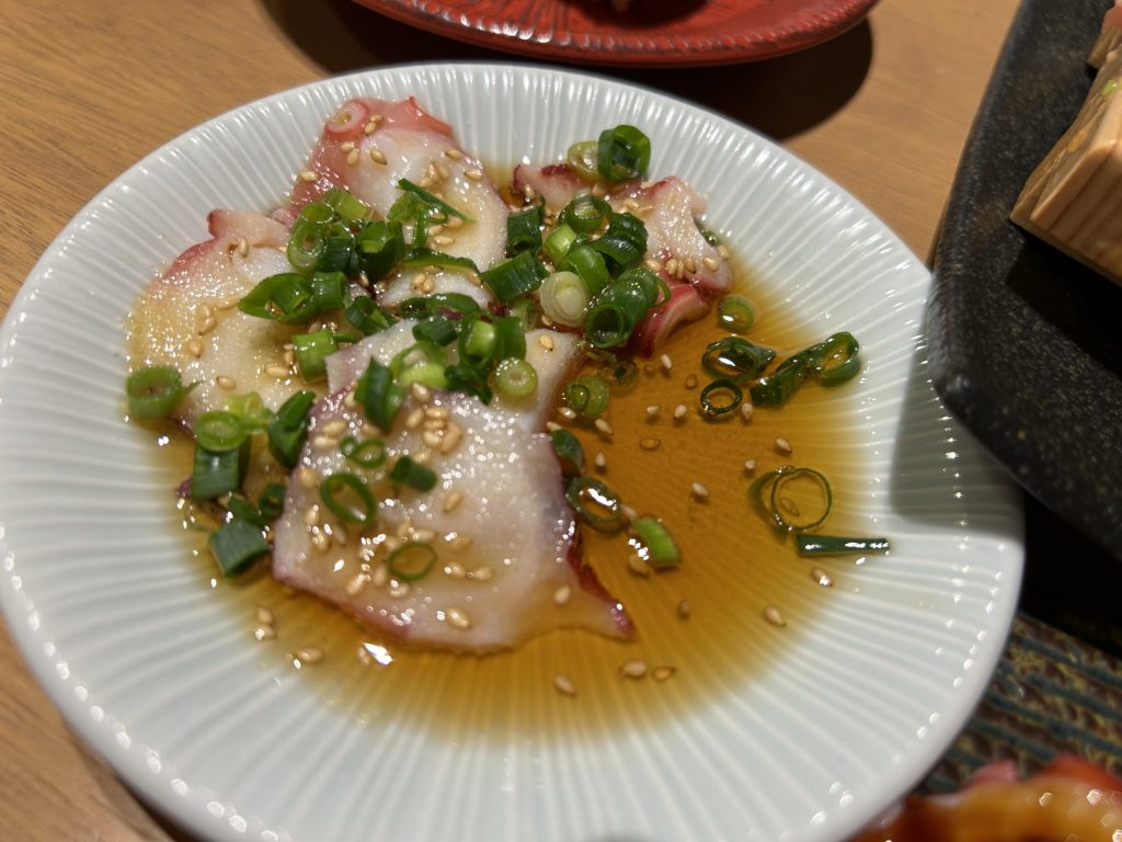 タコ塩ごま油。これも美味かった。家で作ろうと思う。美味しくて、写真撮るの忘れて食べちゃった。↓慌てて撮った(笑)