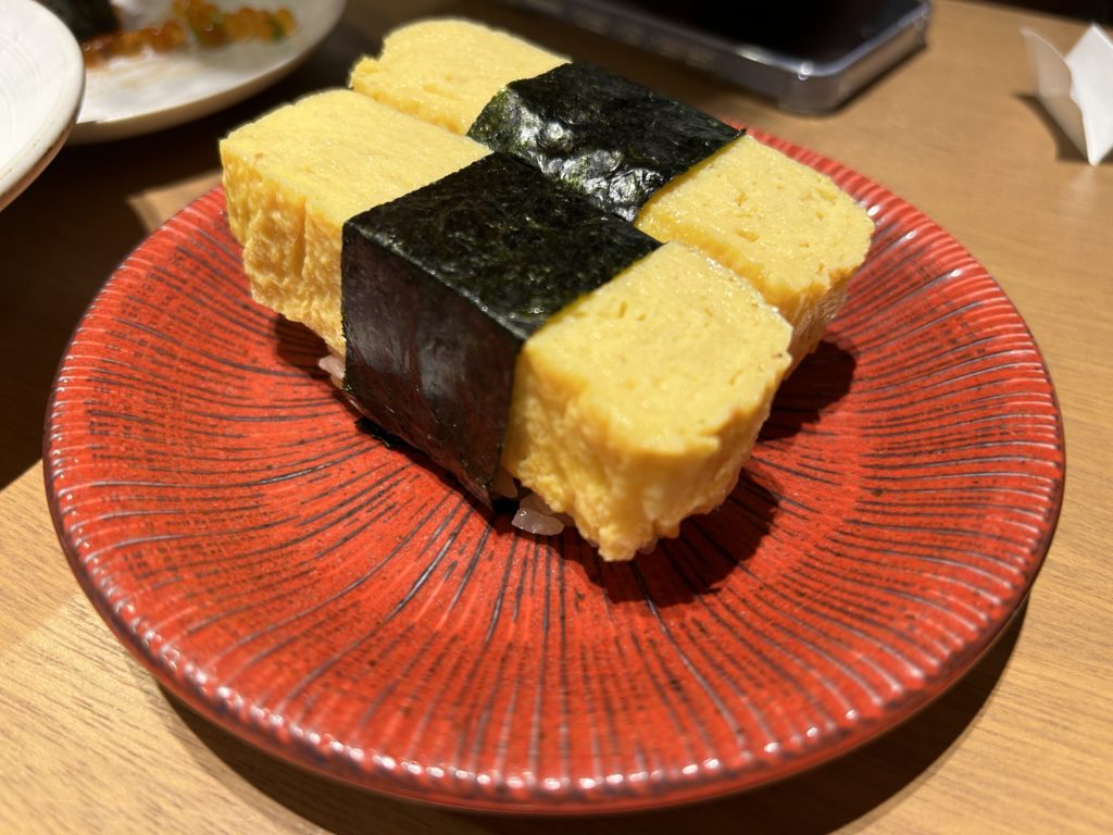 最後に名物。たまご握り。1貫80円。