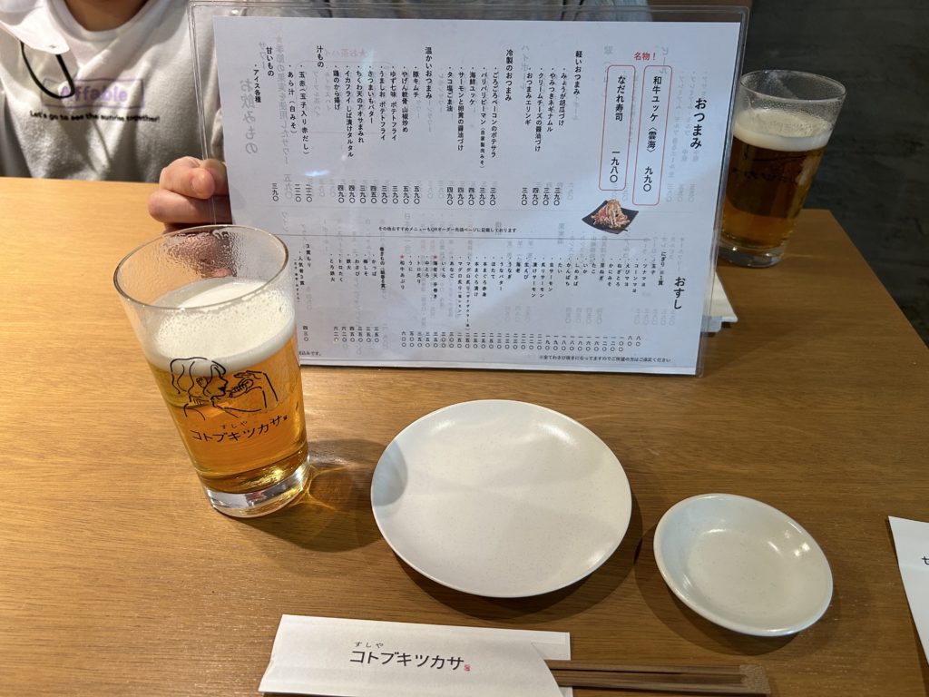 最初に注文したビールとメニューの写真をパチリ❗️