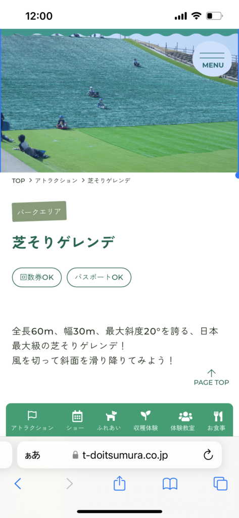 子供向けに芝ソリや、観覧車、小さめバイキングなんかもあります。芝ソリはうちの子もやったけど、なかなかの急斜面らしい。(笑)