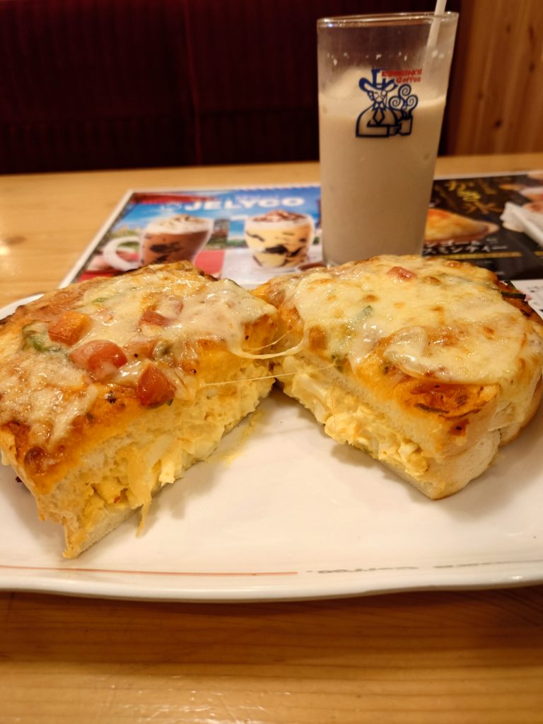 名前の通り、たまごを沢山使用しているピザトースト。トーストの焼き加減、チーズのとろけ具合