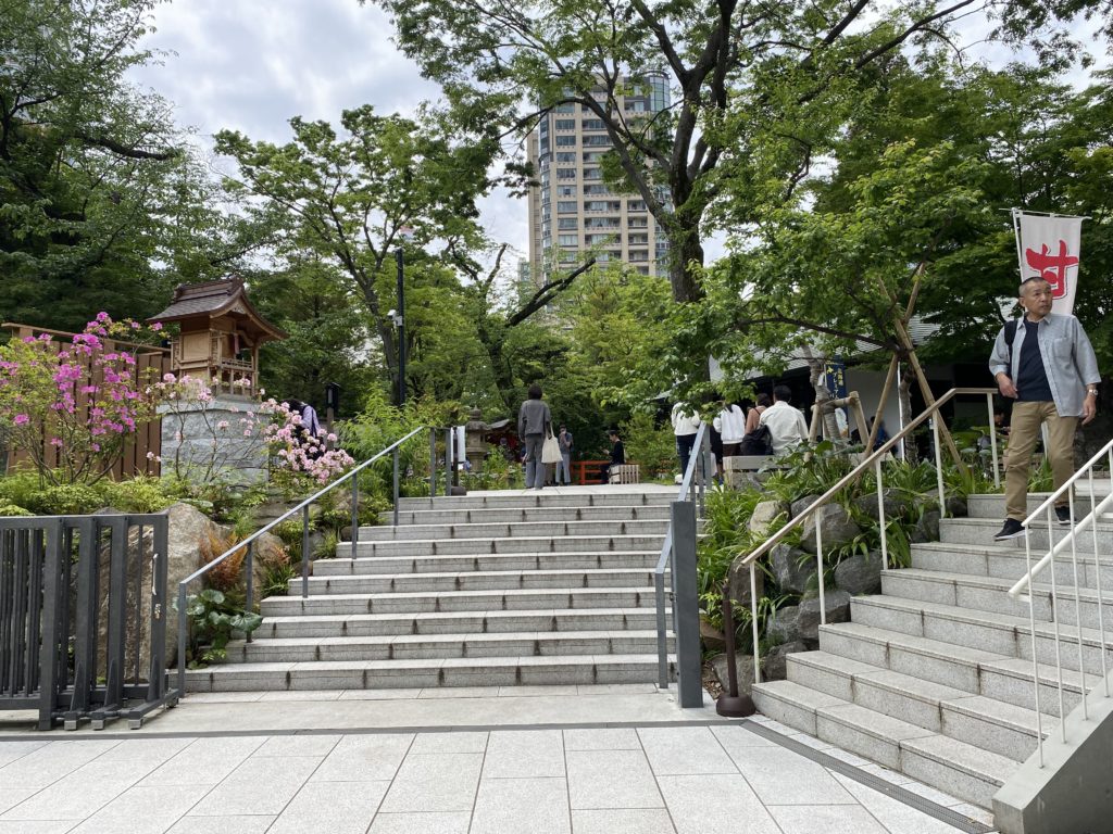 愛宕神社には、出世の石段というものがあり大変急な石段があるのですが、江戸時代に徳川家光の前でこれを馬で駆け上がった人が出世したという言い伝えのある石段です。