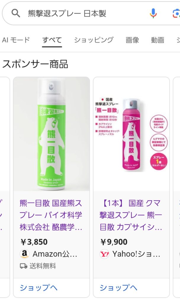 今、国産の熊撃退スプレーが少しずつ出始めます。